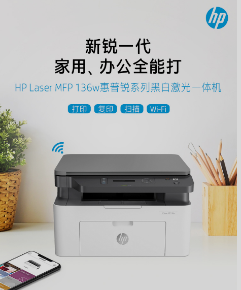 惠普(HP)136w 銳系列黑白激光多功能一體機(jī) 三合一 打印復(fù)印掃描 M1136升級款無線版