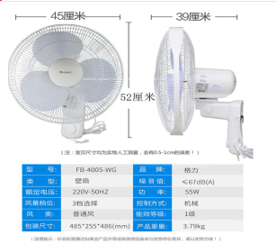 格力(GREE)電風扇壁扇遙控風扇墻壁扇掛壁風扇臺式電風扇家用輕音節(jié)能智能遙控掛壁工業(yè)扇大風量遙控壁扇 機械款 FB-4005-WG