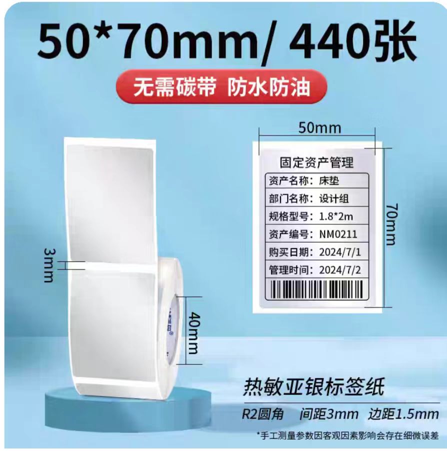 三防熱敏亞銀紙標簽紙,固定資產貼50ⅹ70mm
